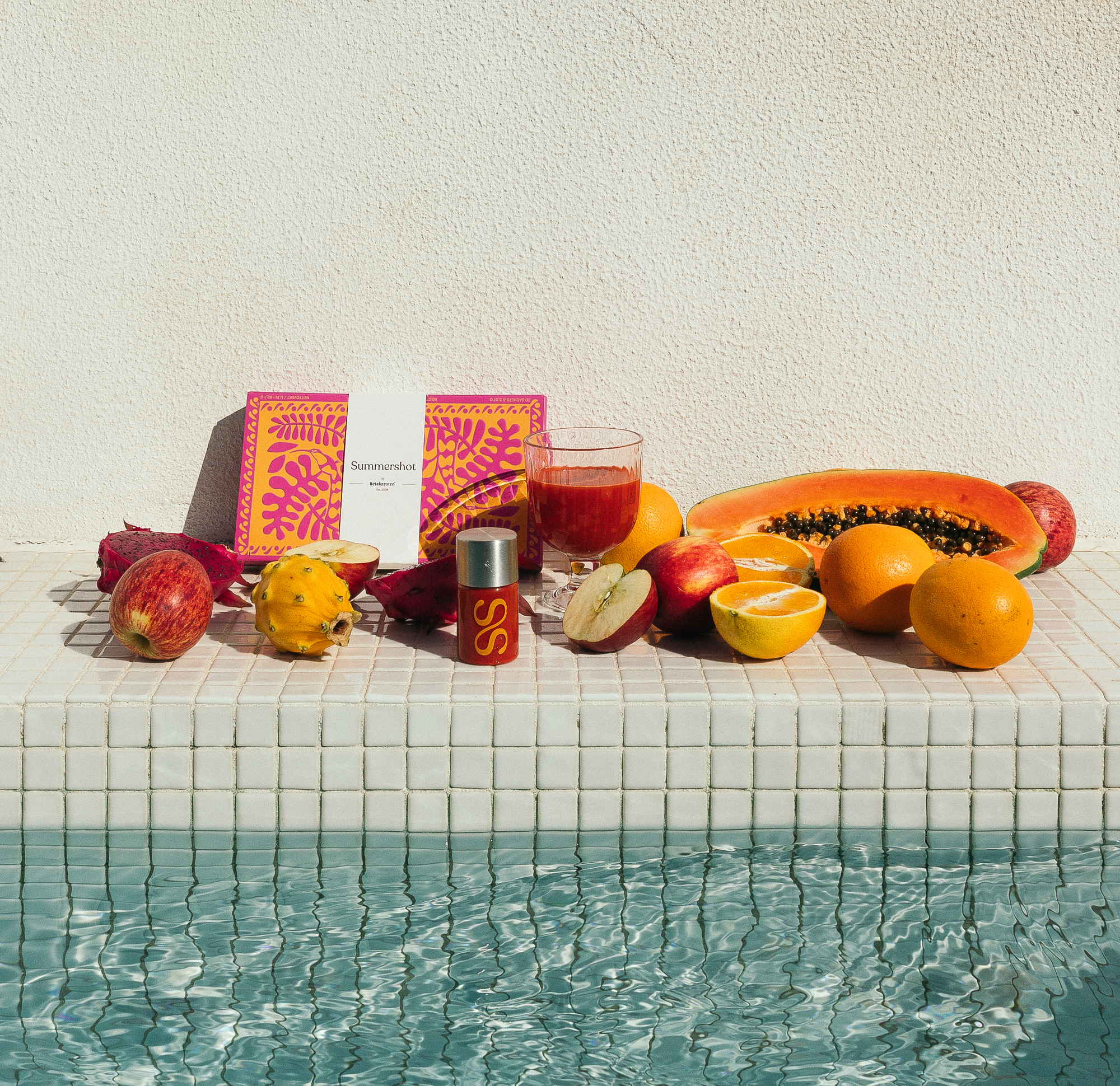 Summershot er mer enn bare et vitamintilskudd; det er en mesterlig blanding av naturens mest kraftfulle ingredienser, hver valgt for sin unike evne til å forbedre din skjønnhet og velvære fra innsiden og ut. Beriket med essensielle vitaminer, mineraler og potente antioksidanter, er Summershot din daglige eliksir for strålende hud, glansfullt hår og generell vitalitet.