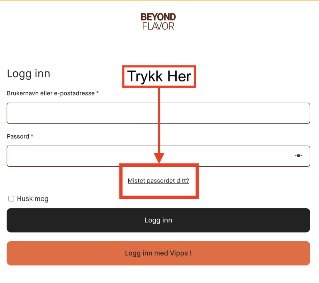 Om du har glemt passordet ditt kan du enkelt opprette ett nytt passord ved å trykke på «Logg inn» øverst til venstre på nettsiden.