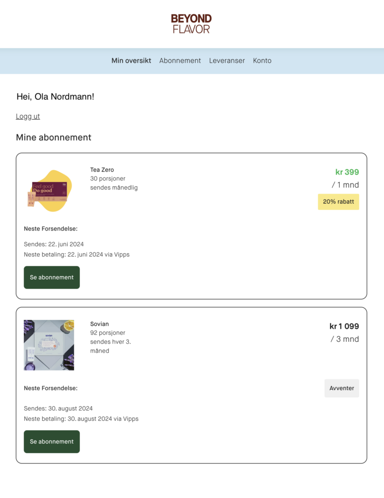 Du kan stoppe ditt abonnement enten ved å gå inn på Min Side eller ved å kontakte oss via epost på hei@beyondflavor.no eller vår live chat.