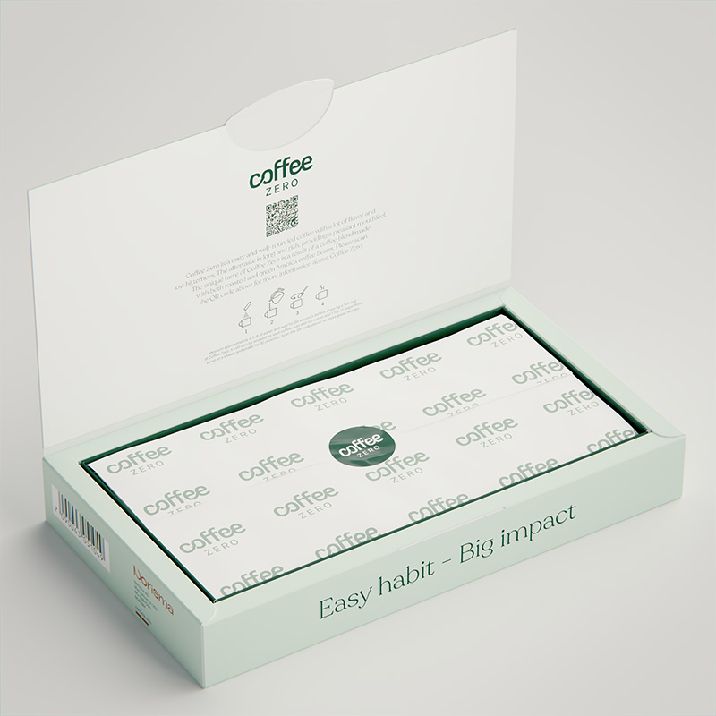 Coffee Zero er en helt unik kaffe som er tilsatt krom. Den inneholder både brente og ubrente kaffebønner. Grønn kaffebønneekstrakt utvinnes fra uristede, grønne kaffebønner og inneholder klorogensyre. Krom bidrar til normal omsetning av makronæringsstoffer og til å opprettholde et normalt blodsukkernivå. Det eneste du trenger å gjøre er å blande ut pulveret i vann. Kan enkelt tas med på farten da kaffen kommer i praktiske porsjonsposer som sikrer at du får samme smak og dosering hver eneste gang!
