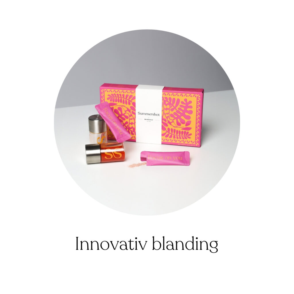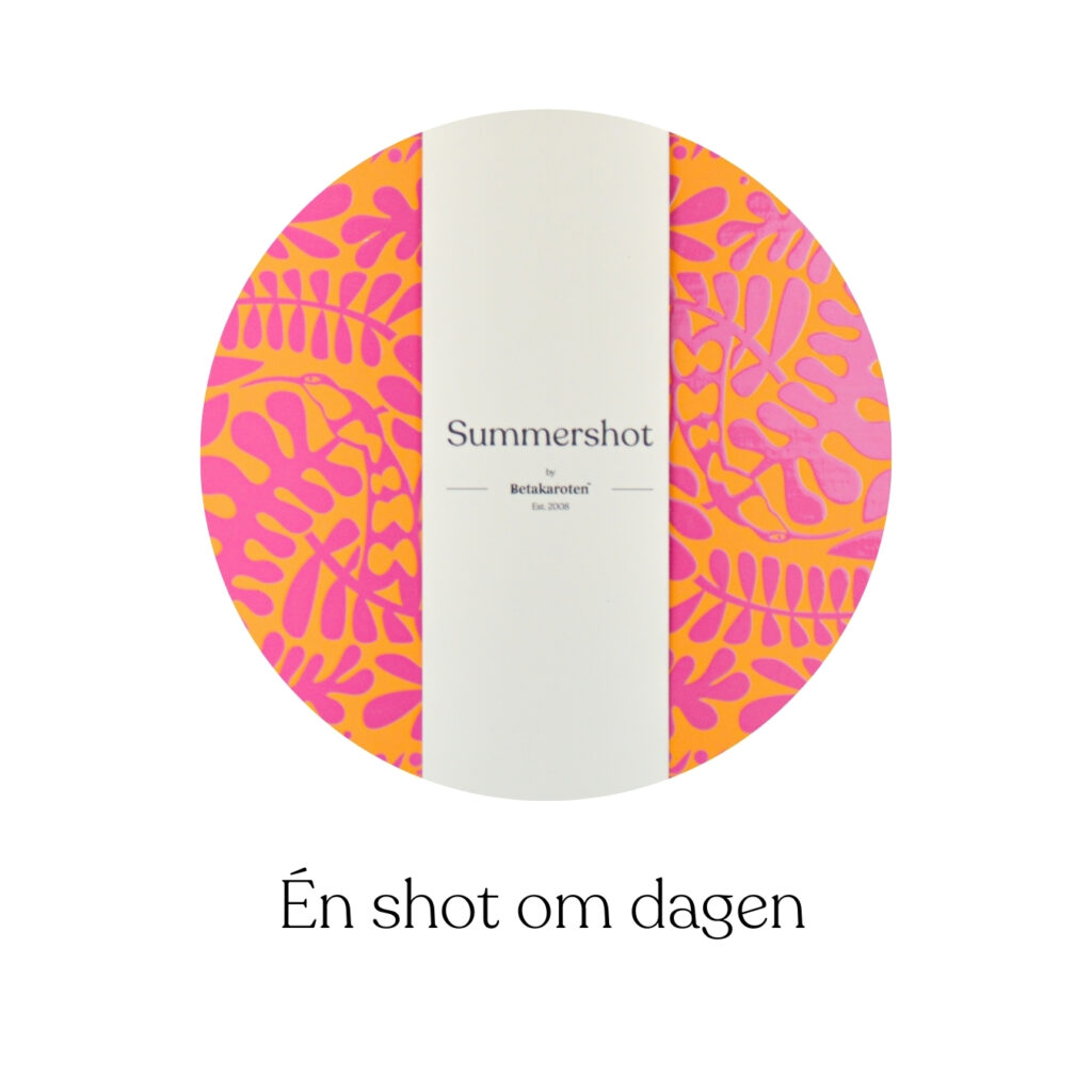 I hjertet av Summershot finner du blant annet naturlige karotenoider, inkludert betakaroten, som gir huden din en varm og sunn glød innenfra. Karotenoider er viktige for å beskytte huden mot skader, men de gir deg også en jevnere, dypere brunfarge som varer lenger, selv med begrenset sol.