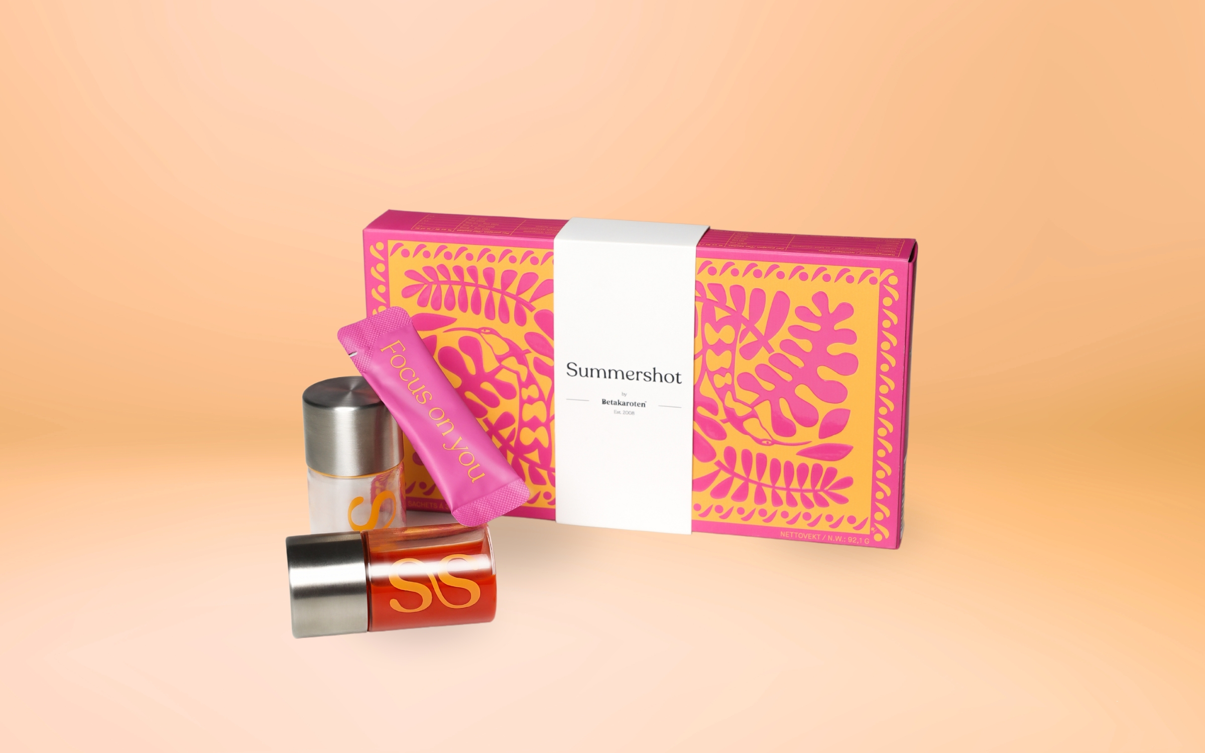 Summershot er mer enn et skjønnhetstilskudd – det er et daglig ritual som gir deg følelsen av sommer, uansett årstid. Ved å kombinere astaxanthin, karotenoider og vitaminer får du en helhetlig støtte til hudens helse, fuktighet og naturlige glød. Ikke fordi du later som solen skinner – men fordi huden din fortsetter å gløde som om den gjør det.