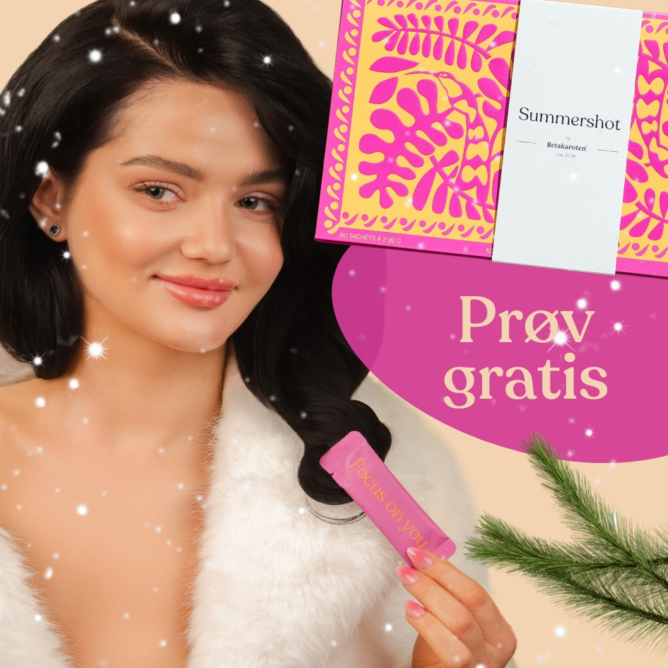 I Summershot kombinerer vi astaxanthin med andre karotenoider, som betakaroten og plantebaserte pigmenter fra gulrot, tomat og tagetes-blomst. Disse naturlige stoffene legger seg gradvis i hudens overflate og gir den en jevnere, mer gyllen undertone – litt som en naturlig “filtereffekt”. Samtidig beskytter de mot oksidativt stress og UV-stråling, slik at du bevarer sommergløden lenger, også når solen forsvinner.